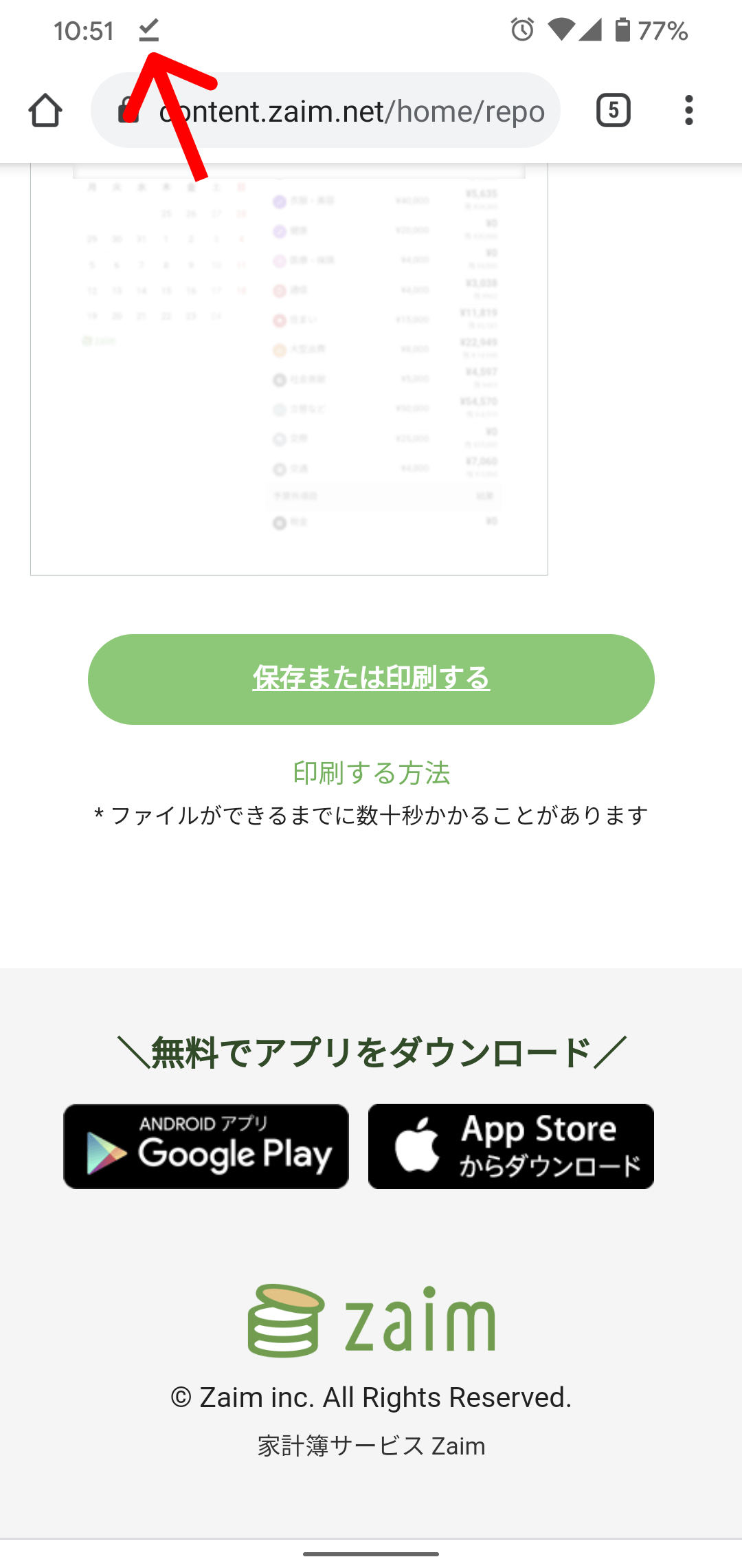 ※Android端末など一部環境下では、「保存または印刷する」をクリックしたあと反応がないように見えますが、端末側にデータは保存されているのでご確認ください