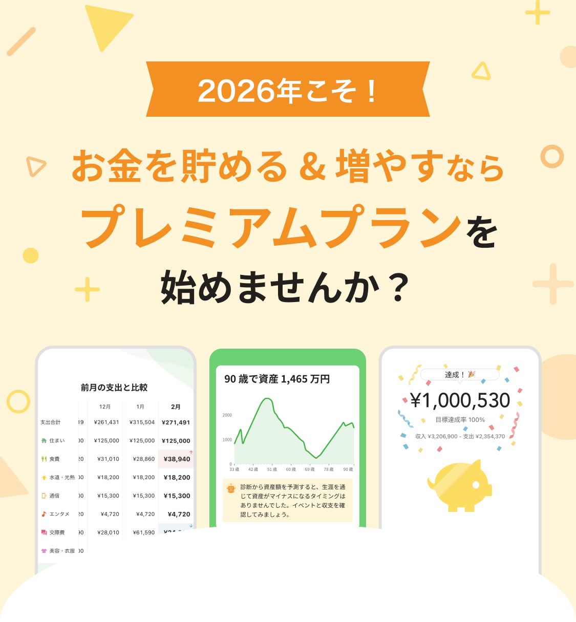 貯金や資産管理をサポートする機能です。目標設定から進捗管理まで Zaim が家計改善に伴走します。